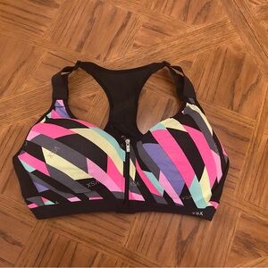 Elevate your workout with the Victoria’s Secret Sport VSX Incredible colorful sports bra, designed for high-impact activities with molded cups for superior support. A front zipper closure adds convenience and style, making it a perfect choice for intense sessions.