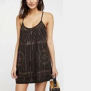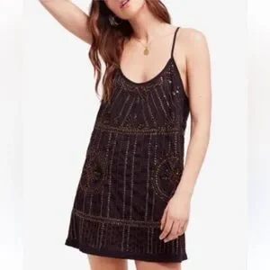 Free People Sedona Embellished Black and Gold Sequin Mini Slip Dress