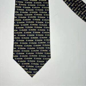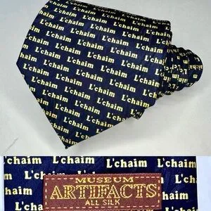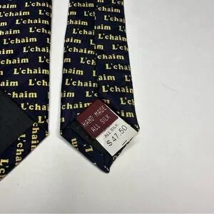 NWT L’chiam L’chiam Museum Artifacts Jewish Hebrew Silk Classic Blue Tie 3.75”