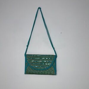 This elegant blue wristlet showcases a woven design that exudes sophistication. Its sequin detail finish adds a touch of glamour, making it a perfect accessory for any occasion. Compact and stylish, it offers convenience with its wristlet style.