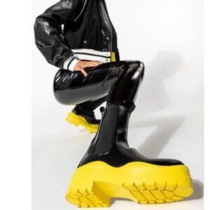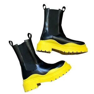 Azalea Wang | Chunky Platform Ghosted Chelsea Rain Boots Grunge Black Yellow 5