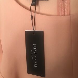 Beautiful and elegant, this Lafayette 148 blouse can be dressed up or down with jeans. The sleeve detail is the finishing touch, just perfect. This is a lovely piece, NEW with tags, never worn, for all of the fashionistas that know and love this great brand. Rose Quartz color.