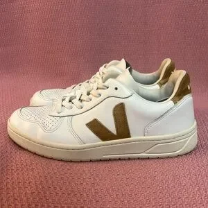 Veja V-10 Women’s Leather Shoes Sneakers White Camel Size 9