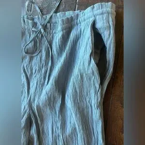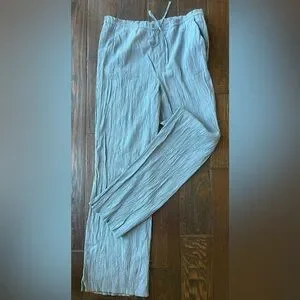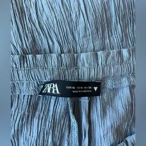 Elevate your wardrobe with these Zara high-rise pants in size XL, crafted for those who appreciate a blend of comfort and style. Featuring a crisp blue hue and a crepe fabric composition of 83% viscose and 17% polyamide, these pants are ideal for a seamless transition from day to evening. The pull-on design ensures ease of wear while the straight-leg cut offers a flattering silhouette. Designed to cater to various occasions, from casual outings to business settings, and even travel, these pants are versatile for all seasons – fall, spring, and summer. The garment's care is hassle-free with its machine-washable attribute. With a waist size of 17.5" and a 32" inseam, these lightweight pants promise to be a go-to in your everyday ensemble.