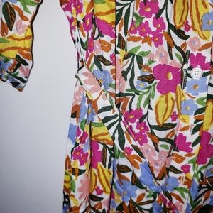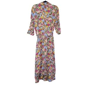 Item is in Excellent Condition. It has a Floral Pattern, Waist Tie, Button Front and Maxi Length