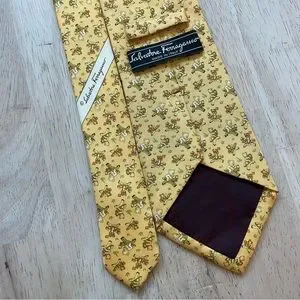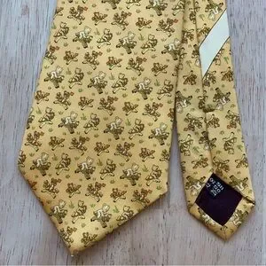 Salvatore Ferragamo Yellow Gold Teddy Bear riding Pony Silk Tie! Like new