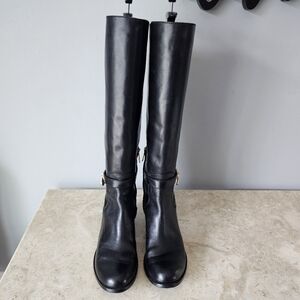 Michael Kors Hamilton Riding Boots Women’s Size 7.5 Black Leather Knee High Gold