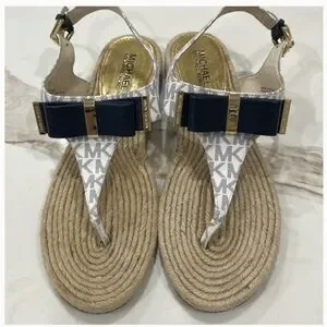 MICHAEL KORS* logo Leather Upper Thong Sandal Espadrille Rubber Bottom Size 6