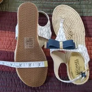 MICHAEL KORS* logo Leather Upper Thong Sandal Espadrille Rubber Bottom Size 6. measurements in pics NWOT condition, never worn. Ready to set off your summertime outfits!