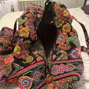 Black floral retired pattern duffel bags from Vera Bradley. Large bag is super roomy for a long weekend, smaller bag is perfect for toiletries and more. Excellent used condition.