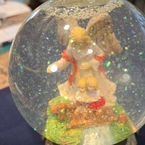 This enchanting snow globe features a beautifully crafted guardian angel scene, perfect for adding a touch of magic to your home. The globe sits on an elegant gold base, making it a stunning centerpiece for any room. This is perfect for a child or grandchild.