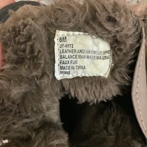These comfy fawn colored ankle boots offers a side zip closure. They feature a brown faux fur collar/lining, rubber outsole for traction and decorative accent straps with buckle. They are in great used condition showing minimal natural wear. Please look over the pictures carefully and let me know if you have any questions.
