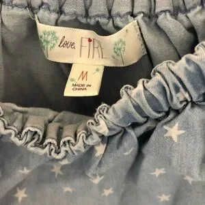 LOVE, Fire Blue Chambray & White Stars Off Shoulder Dress Size M