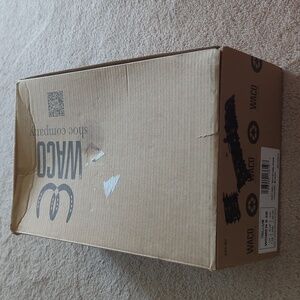 The slippers are new with tag, but the box has writing and marks on it, see pictures.