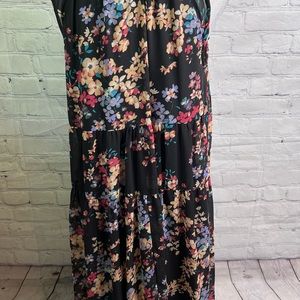 ENTRO Black Floral Lined Maxi Dress Large NWT