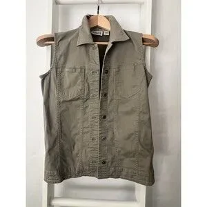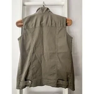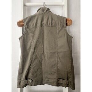 Chico's Design Button Up Twill Vest Womens S (Chico's 0) Khaki Gray Pocket Welt