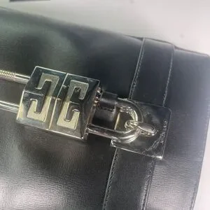 Leather band featuring Givenchy metal clasp around the leg, with silver-finish 4G padlocks on the sides