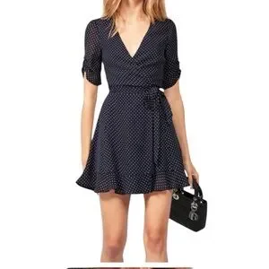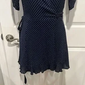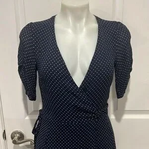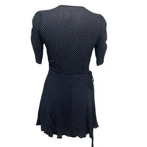 Reformation Monica navy polka dot short sleeve wrap dress size small