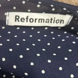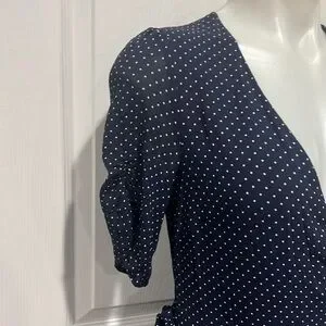 Reformation Monica navy blue polka dot short sleeve