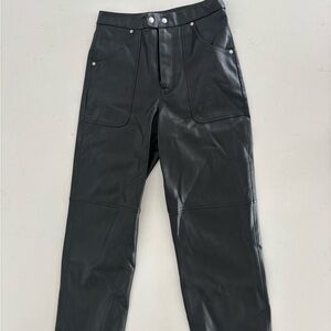 Blank NYC Black Vegan Leather Rip Cage Straight Leg Pants