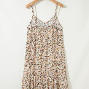 B279 Khaki Boho Floral Print Tie Waist Flared Suspender Mini Dress