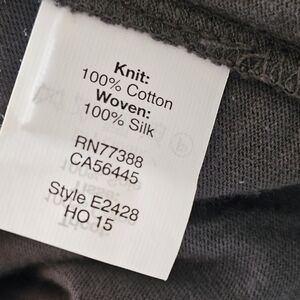 100% cotton with 100% silk pannels. Pretty forrest green color.