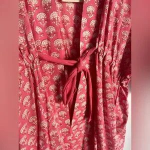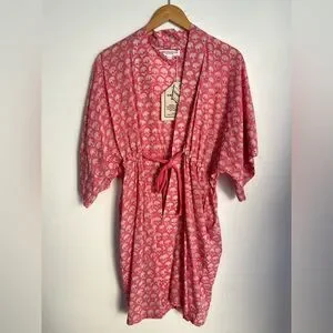 Sweet little block print robe with twill tape waist tie. XS/S TTS