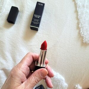 Indulge in the timeless allure of Dior's velvet red lipstick, offering a bold and vibrant hue that enhances any look. Encased in a sleek case, this lipstick delivers a smooth, precise application with its expertly shaped bullet. Perfect for making a statement, this classic red shade Dior 999 is a must-have in any makeup collection.