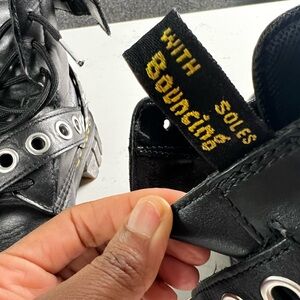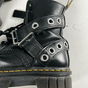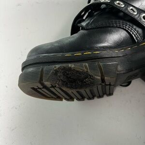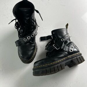 Dr martin chunky platform boots. Step out in style with these black leather women's boots. Featuring a rugged design with buckle accents, these boots offer both fashion and durability. Perfect for any occasion.