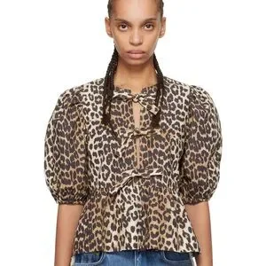 GANNI Cheetah Peplum Poplin top
