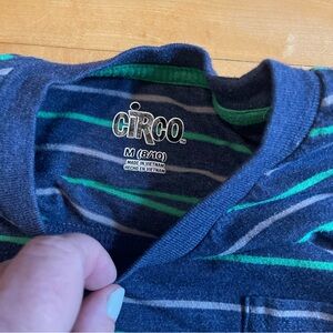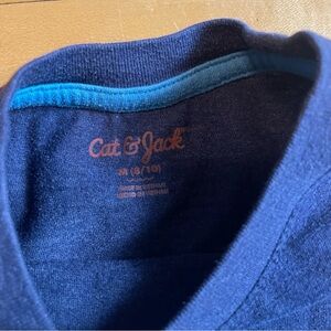 -Cat & Jack blue, navy, and green striped shirt in size 8/10