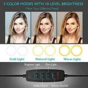 3 lighting modes: warm light, cool white and day light . Each lighting mode has 10 adjustable brightness levels.