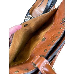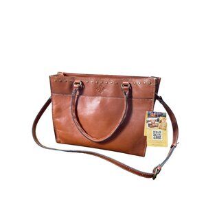 Crafted from premium Italian leather, this Patricia Nash handbag combines functionality and sophisticated design. Features stud accents and adjustable strap for versatility. This is an unused with tag beautiful bag. Has a very minor scratch on bottom of the bag pointed in pics; But what a beauty. The quality Italian leather makes this a very desirable piece to have. No defects. I ship really fast. SKU 8565