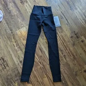 These sleek black leggings from Lululemon Athletica are designed for optimal performance and comfort. Featuring a high waistband and a form-fitting silhouette, they are perfect for both workouts and casual wear. The stretchy, athletic material ensures a snug fit, making them a versatile addition to any wardrobe.
