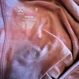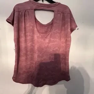 This Xersion quick dry t-shirt features a stylish cut-out design with a pink hue, perfect for casual wear. The short sleeves and soft knit fabric ensure comfort and a relaxed fit. Its subtle texture adds a unique touch to your everyday look.