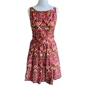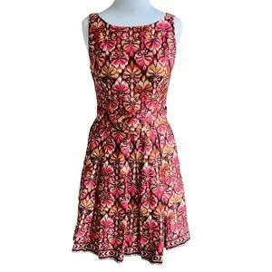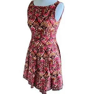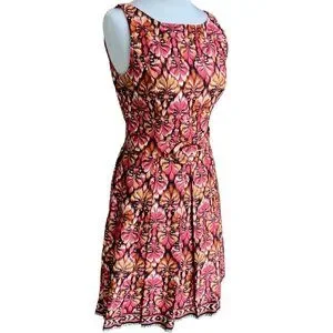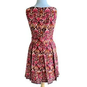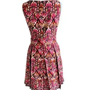 MUSE SLEEVELESS ZIP PLEATED BOTTOM 6 MULTI COLORED ABSTRACT PATTERN DRESS NWOT