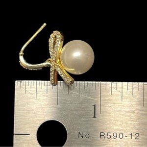 SHASHI new La Perla 14K Goldplated brass with Faux Pearl & CZ now earrings.