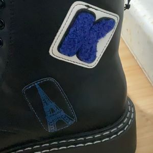Karl Lagerfeld Black Combat Boots with Red Accents