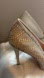 Good used condition does have signs of use some rhinestones missing, some manufacturers defect. Bottom is a bit dirty, comes in box. Color is white/ ivory has beautiful shimmer and pearls size 8 in women.