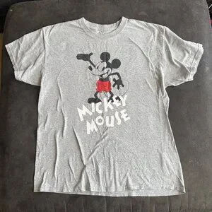 Vintage Disney Gray Mickey Mouse Graphic T-Shirt Short Sleeve Cotton Blend Unise