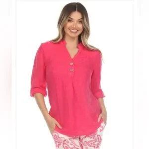 Flora Ashley NEW 9332 Hot Pink Linen Tunic Top SZ S