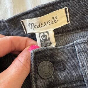 These Madewell jeans feature a sleek skinny fit in a rich black color, offering a modern and versatile look. Crafted from stretchy denim, they ensure a comfortable and flattering fit for any occasion.