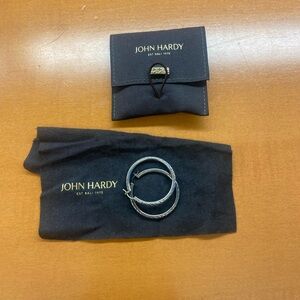 These exquisite earrings by John Hardy showcase a stunning carved chain pattern in sterling silver, offering a sleek and sophisticated look. The lightweight design and classic circular shape make them perfect for everyday elegance.