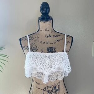 BNWT. Dream angels crochet lace push-up corset (32B) with a zipper back and garter clips! It's white with a white underlay. Brand new condition, no flaws of any kind! I promise you will Love it! Perfect for a wedding. With matching high waist thong panty. (SMALL) PANTY IS DIFFERENT FROM WHAT’S ON MODEL!