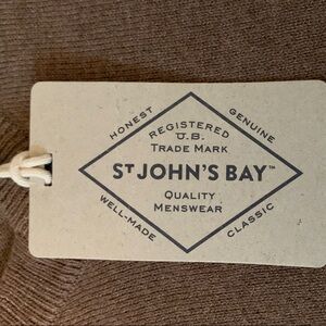 Experience timeless style with the St. John's Bay crewneck sweater in a rich brown hue. This sweater features a classic design with ribbed cuffs and waistband, crafted from a smooth knit fabric for a clean and minimalist look. Perfect for adding a touch of elegance to your wardrobe.