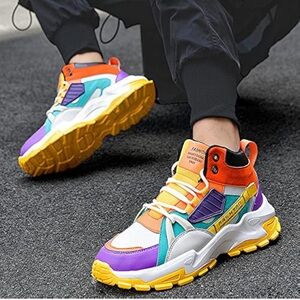 Men's fashion color block sports shoes, casual walking sports shoes, thick platform sports shoes. Used in good condition