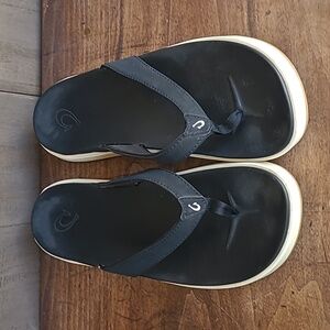 OluKai Sandals Women's sz 10 NU' A PI' O Black Leather Flip Flop Sandals