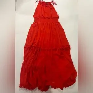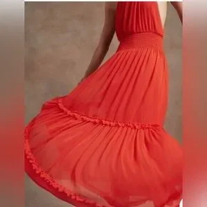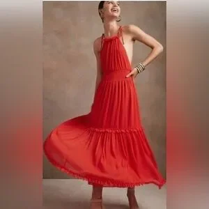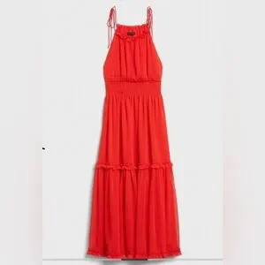 Banana Republic Deep Orange Halter Sundress with Ruffled Tiers NWT Size Large