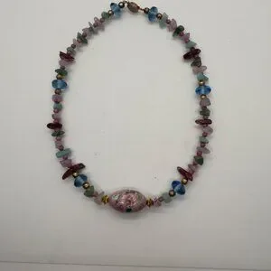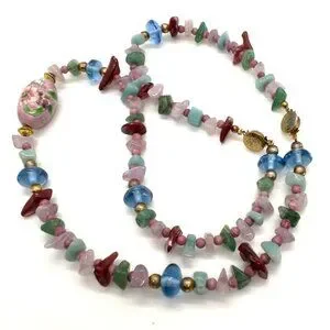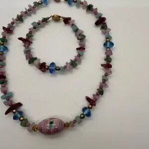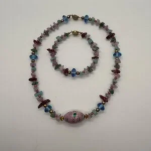 Cloisonné Bead Necklace with Multicolor Natural Stone & Glass and Bracelet