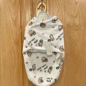 Adorable white swaddle featuring Winnie the Pooh designs. Perfect for keeping your baby cozy. “You’re as sweet as hunny” & “love, Pooh” wording.